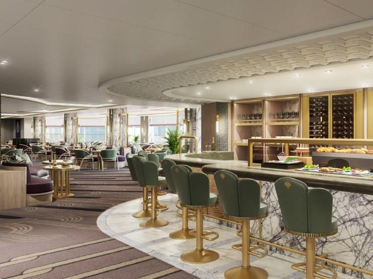 Crowning the Grand Lobby, the Carinthia Lounge is a time-honored Cunard favorite, and the ideal place to begin your day at sea. Live music shapes the rhythms of the day as you enjoy exquisitely crafted pastries served alongside barista-crafted coffee. Enjoy dishes crafted from high-quality ingredients right through until evening falls. As the sun slips behind the waves, wine, charcuterie boards, and small plates complete the menu in this stylish lounge.