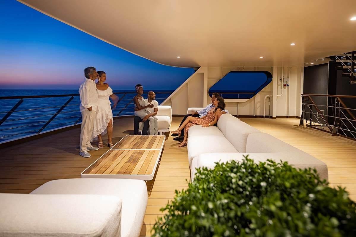 Open bars and lounges, including 24-hour bar service with specialty appetizers, are always included. Get to know your fellow explorers with champagne and gourmet canapés during a meet and greet. Enjoy a leisurely evening swapping stories or looking out on the horizon from spacious decks. An ambiance of relaxed luxury invites you to savor each moment of the journey, allowing for deeper connections as you mingle with new friends.